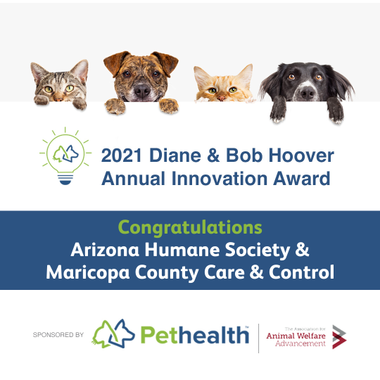 Pethealth Inc. is pleased to announce the 2021 recipient of the award is Arizona Humane Society! The team at Arizona Humane was faced with several complex challenges both in and outside their shelter caused by the COVID-19 pandemic. They were able to adjust their pre-existing vehicle donation program to target donors in the community wishing to sell a vehicle, significantly increase the program's annual revenue, and become the first non-profit in Arizona with a licensed and insured used car dealership. The organization will receive $15,000 for their innovative used car donation program.